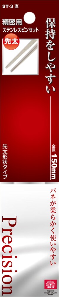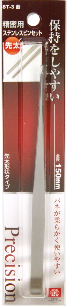 SK11 精密用 ステンレスピンセット ST-3 直 150mm 先太 (1本)