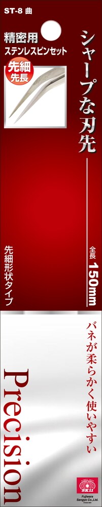 SK11 ピンセット 精密用 150 ST-8曲 先細長 (1本)