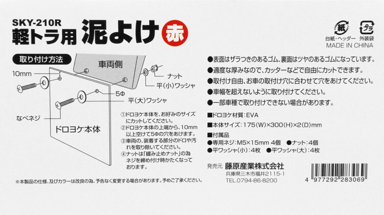 【SK11 軽トラ用泥よけ 赤 SKY-210Rの商品詳細】
