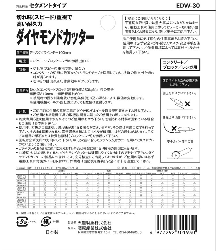 【E-Value ダイヤモンドカッター セグメントタイプ EDW-30の商品詳細】