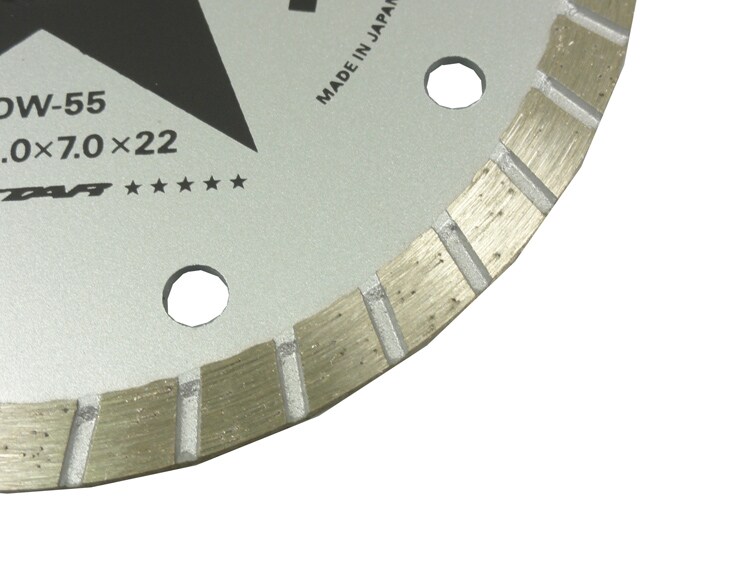 | ・用途:コンクリート・ブロック・レンガ等の切断・加工 ・外径:125mm ・内径:22mm(20mm) ・刃厚:2.0mm ・ダイヤ幅:7.0mm ・最高回転速度:12200min-1 ・乾式専用 ・使用機種:ディスクグラインダー125mm |