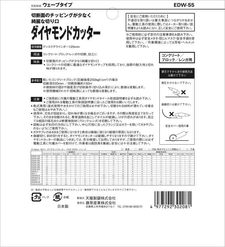 【E-Value ダイヤモンドカッター EDW-55の商品詳細】