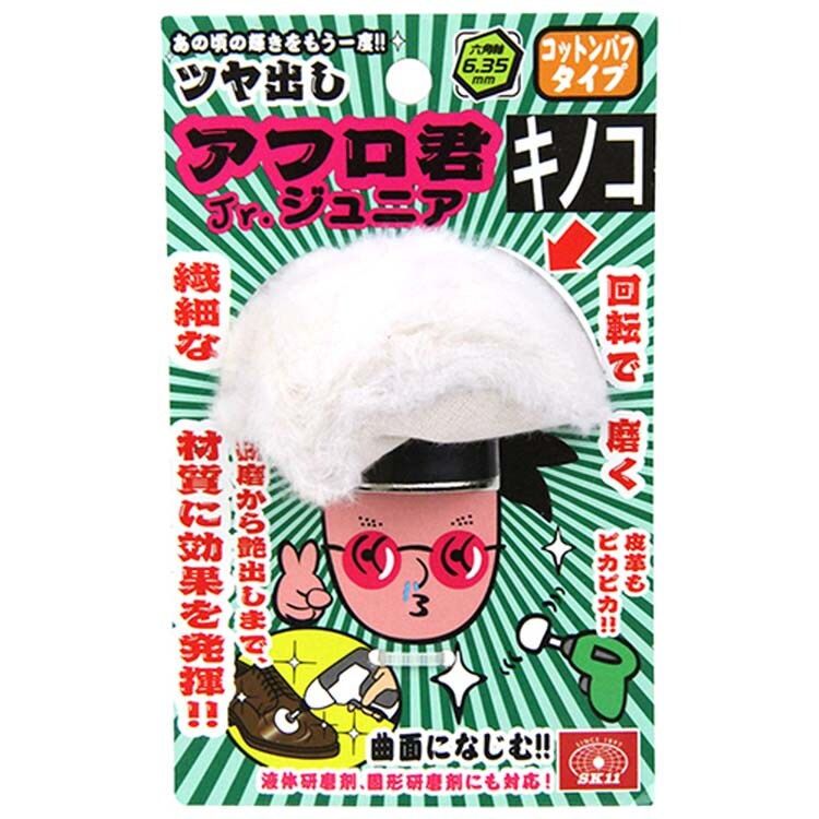 【SK11 ツヤ出しアフロ君ジュニア キノコ コットンバフタイプ 75mm 六角軸6.35mmの商品詳細】
