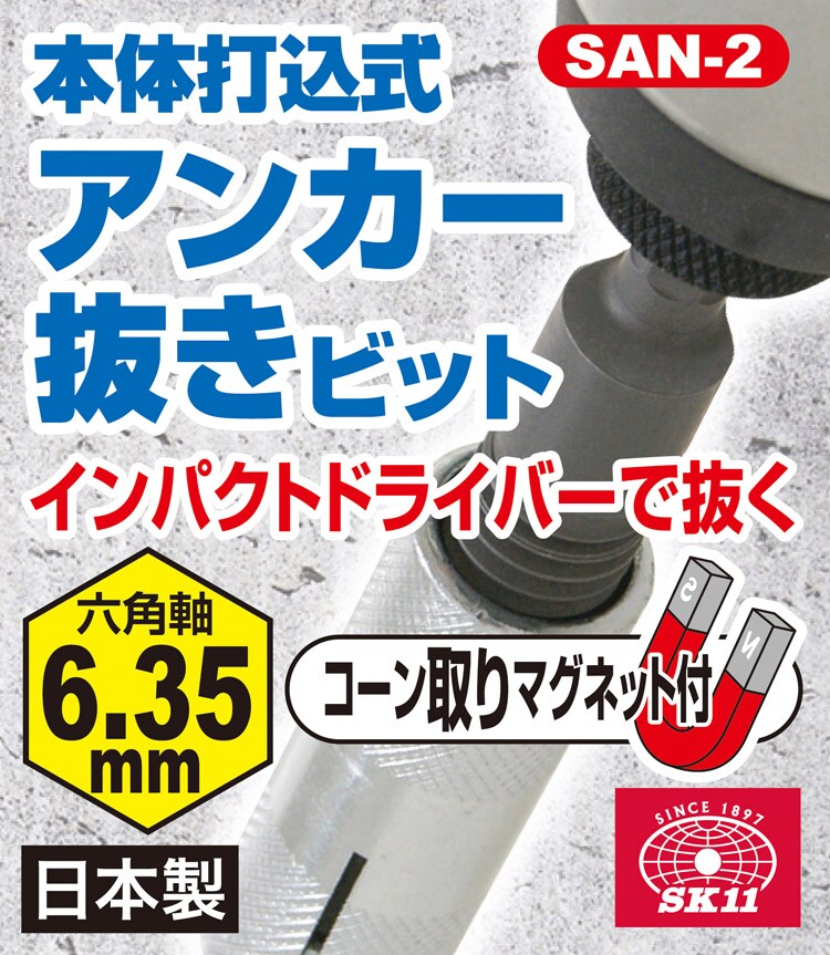 SK11 本体打込式 アンカー抜き六角軸ビット W1/2 50mm SAN-2 (1本)