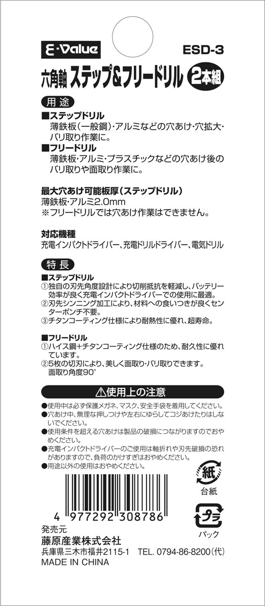 【E-Value 六角軸 ステップ&フリードリル ESD-3の商品詳細】