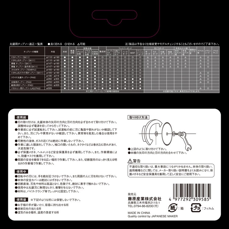 ・刃の取り付けは、丸鋸本体の矢印の方向と刃の方向を必ず合わせて取り付けてください。