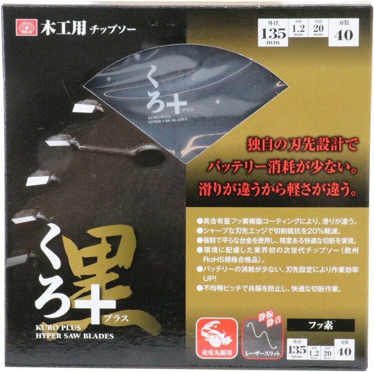 | ・外径:135mm ・刃厚:1.2mm ・内径:20mm ・刃数:40 ・フッ素樹脂コーティング ・欧州RoHS規格適合品 |