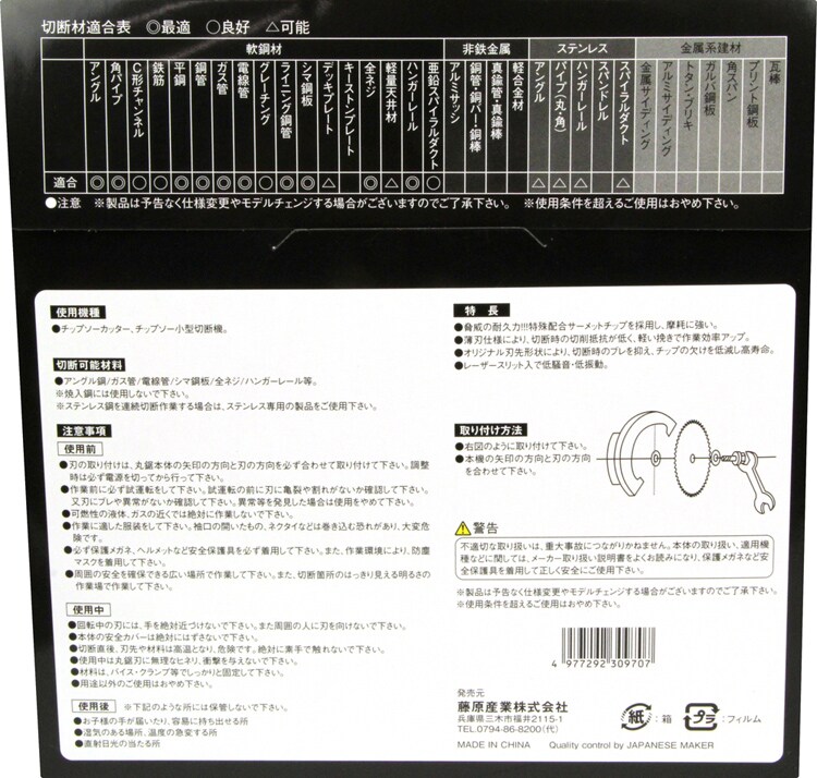 ・作業前に必ず試運転をして下さい。試運転の前に刃に亀裂や割れがないか確認して下さい。また、刃にブレや異常がないか確認して下さい。異常等を発見した場合は使用をやめて下さい。