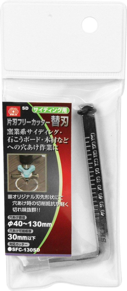 | ・窯業系サイディング用 ・穴あけ直径:40~130mm ・穴あけ可能板厚:30mm以下 ・対応カッター:SFC-130SD |