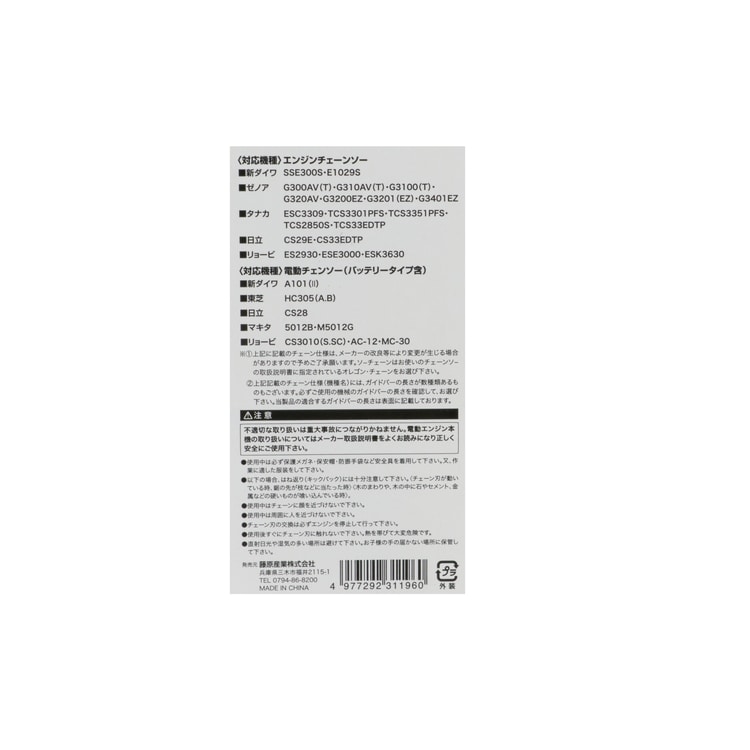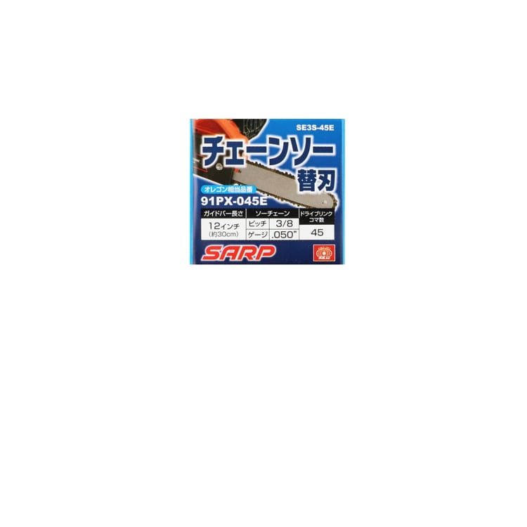 | ・相当オレゴン品番:91PX-045E ・ガイドバー長さ:12インチ(30cm) ・ソーチェーンピッチ:3/8 ・ソーチェーンゲージ:.050 ・ドライブリンクコマ数:45 |