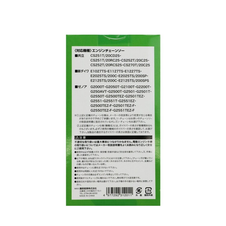 | ・相当オレゴン品番:25AP-052E ・ガイドバー長さ:8インチ(20cm) ・ソーチェーンピッチ:1/4 ・ソーチェーンゲージ:.050 ・ドライブリンクコマ数:52 |