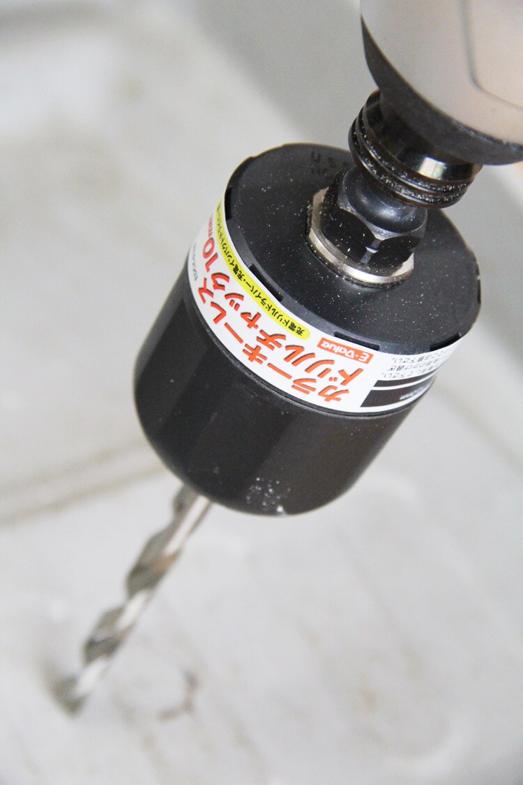 ●丸軸タイプのドリルを取付けての穴あけ作業。