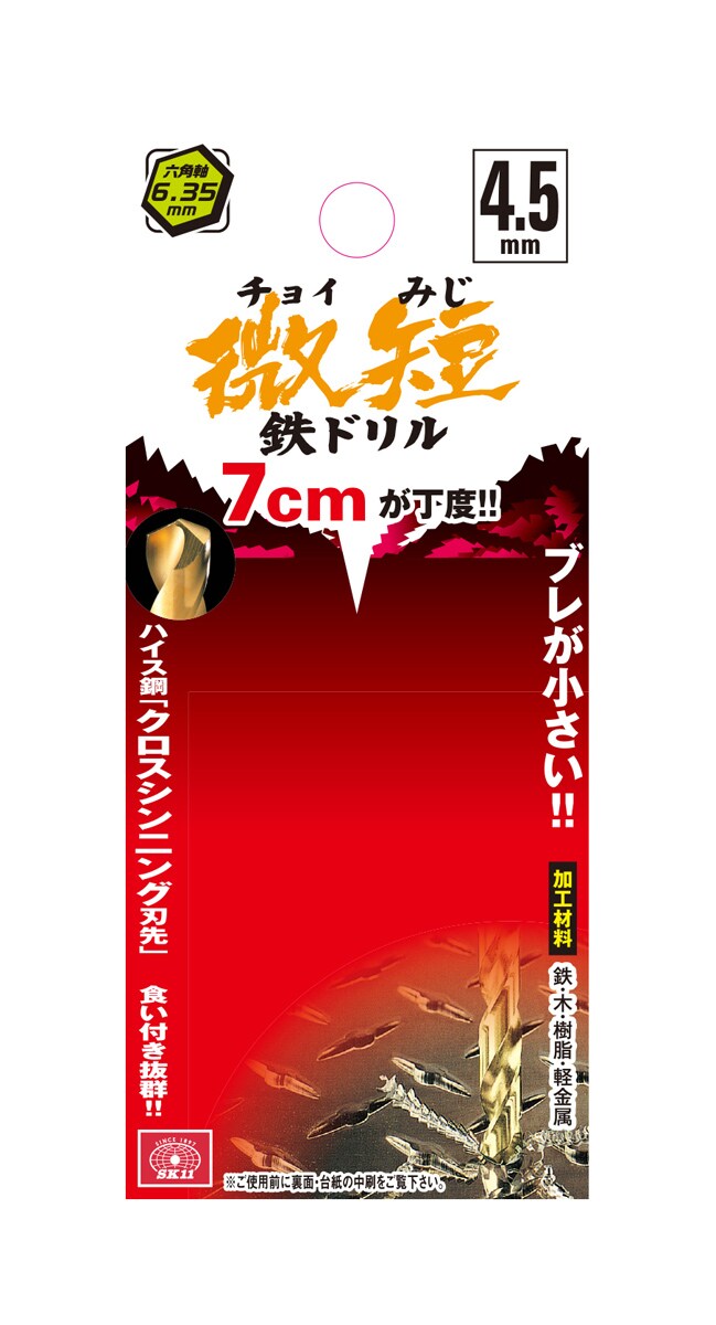 【SK11 六角軸チタンコーティング鉄ドリル 微短(チョイみじ) 4.5mm 5pcsの商品詳細】