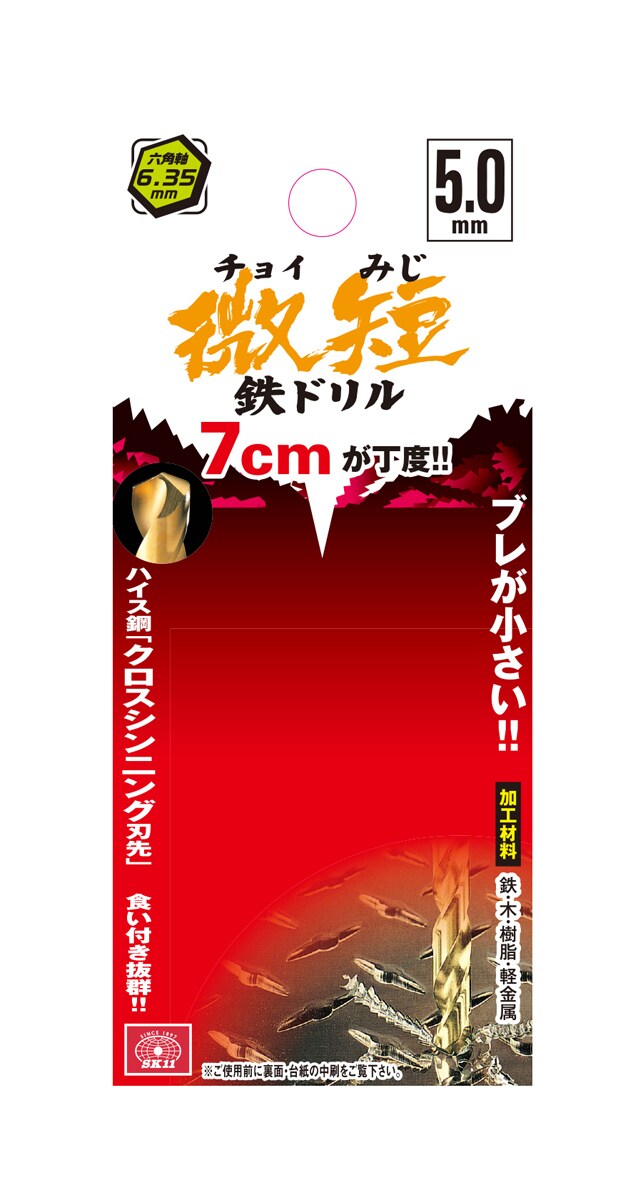SK11 六角軸チタンコーティング鉄ドリル 微短(チョイみじ) 5.0mm 5pcs (5本組)