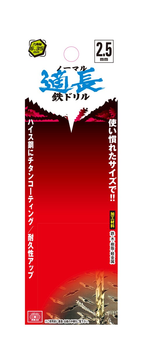 | ・サイズ:2.5mm ・標準穴あけ可能厚:(鉄)2.0mm・(木)らせん溝長の2/3程度 ・軸:六角軸6.35mm ・使用電動工具:充電式インパクトドライバー・ドリルドライバー・電気ドリル ・加工材料:鉄・木・樹脂・軽金属 ・5本組 |