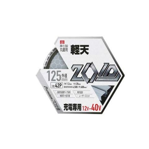 外径:125mm。刃数:42P。刃幅:1.2mm。内径:20mm。最高使用回転数:4500/9600min-1。(材質)刃先:超硬。台金:鉄。