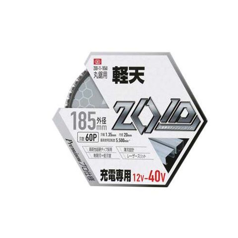 外径:185mm。刃数:60P。刃幅:1.35mm。内径:20mm。最高使用回転数:5500min-1。(材質)刃先:超硬。台金:鉄。