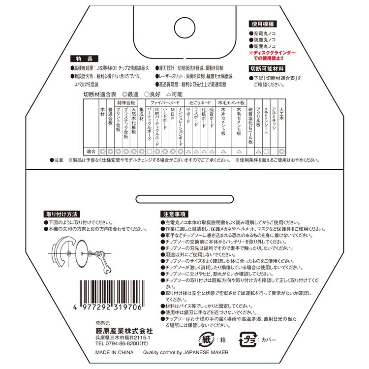 ・使用する電動工具本体の取扱説明書をよく読み安全にご使用ください。