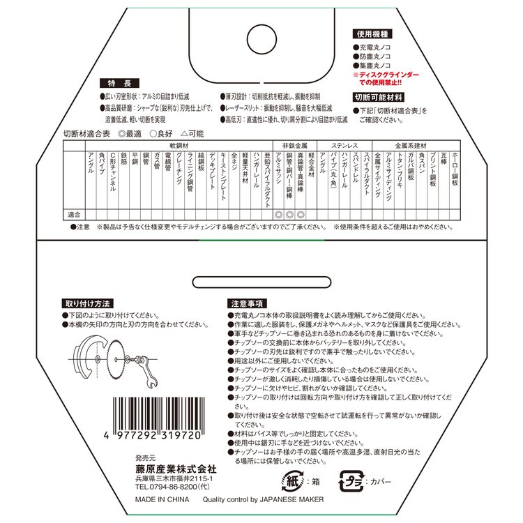 ・使用する電動工具本体の取扱説明書をよく読み安全にご使用ください。
