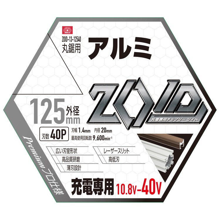 【SK11 ZOIDチップソー 丸鋸用 アルミ用 充電専用10.8V-40V 125mm ZOID-13-12540の商品詳細】