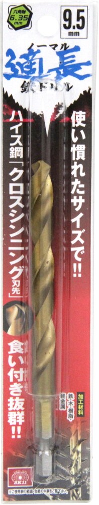 SK11 六角軸チタンコーティング鉄ドリル 適長(ノーマル) 9.5mm (1本)