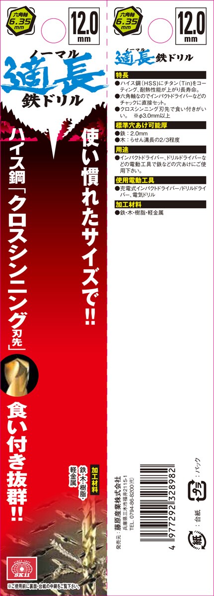 SK11 六角軸チタンコーティング鉄ドリル 適長(ノーマル) 12.0mm (1本)