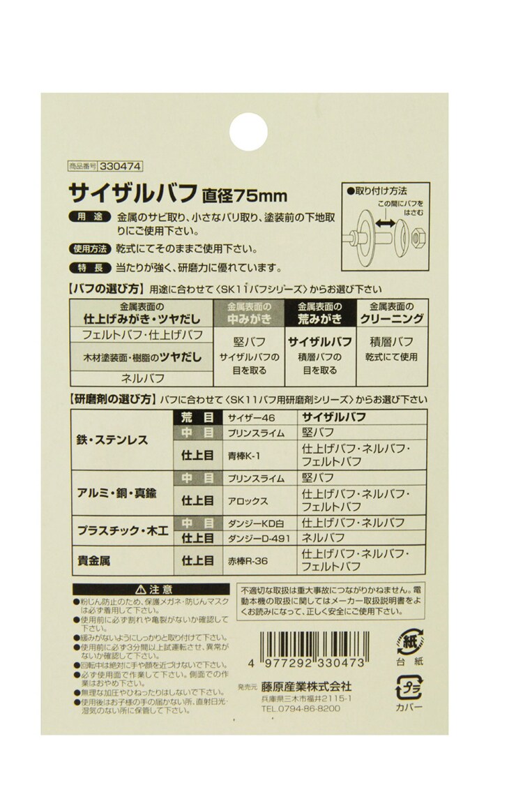 SK11 サイザルバフ 75mm 万能アーバー・ロングサイズアーバー用 (2枚入)