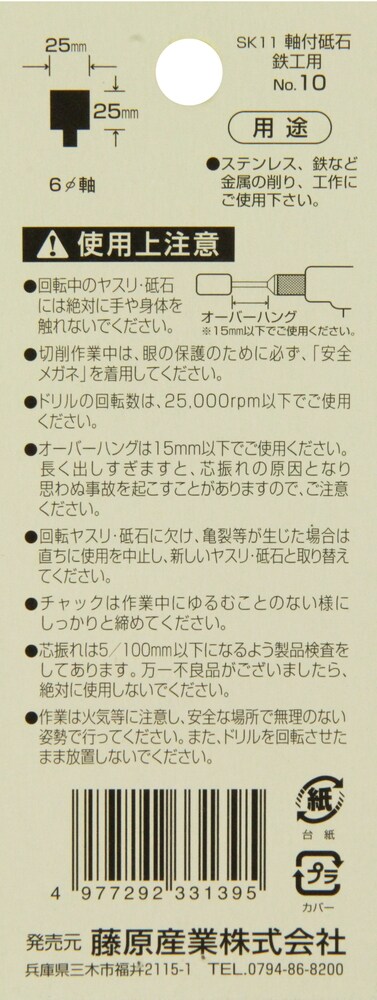 軸径:6mm、砥石部分巾:25mm、長さ:25mm