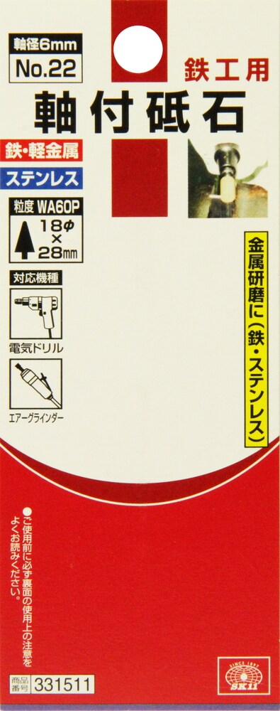 【SK11 軸付砥石 鉄工用 No.22の商品詳細】