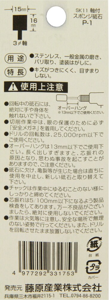 【SK11 軸付スポンジ砥石 P-1の商品詳細】