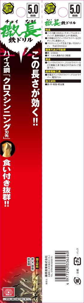 SK11 六角軸チタンコーティング鉄ドリル 微長(チョイなが) 5.0mm (1本)