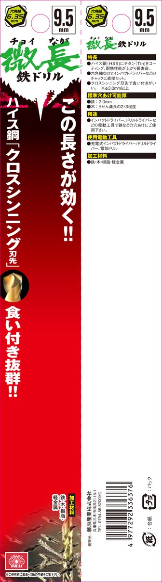 SK11 六角軸チタンコーティング鉄ドリル 微長(チョイなが) 9.5mm (1本)