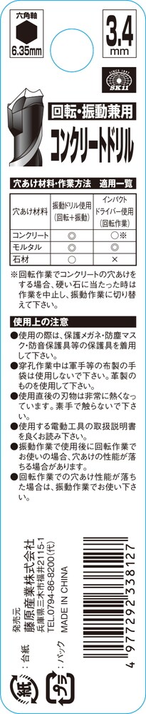 【SK11 コンクリートドリル 3.4mmの商品詳細】