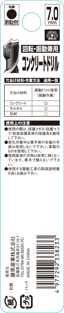 | サイズ:7.0mm 回転・振動兼用 丸軸滑り止め付 適合機種:回転ドリル・振動ドリル |