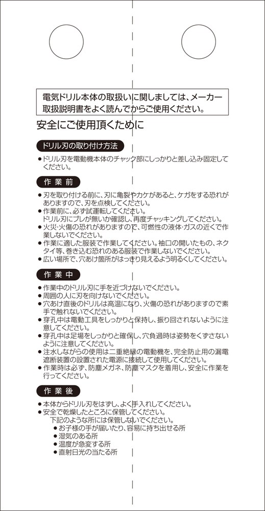 ・磁器タイル・石材・ホーロー・金属をご使用になる場合は、それぞれ専用のドリル刃をご使用下さい。