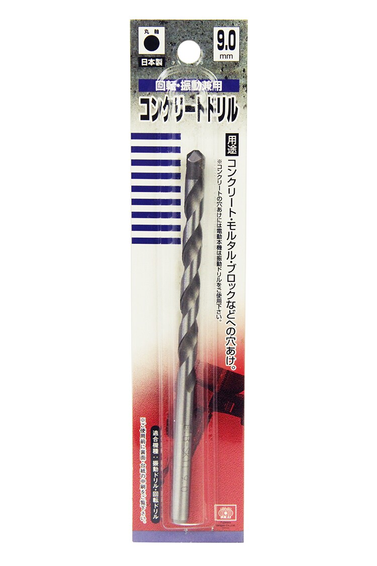 | ・サイズ:9.0mm ・丸軸 ・使用機種:振動ドリル・回転ドリル ・適応材(回転ドリル使用時):ブロックレンガ○・モルタル◎・ALC◎・FRP○・タイル○ ・適応材(振動ドリル使用時):無筋コンクリート◎・ブロックレンガ◎・モルタル◎・ALC△・FRP△ ・材質:刃先:超硬チップ |