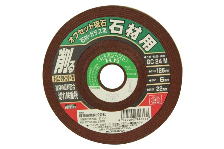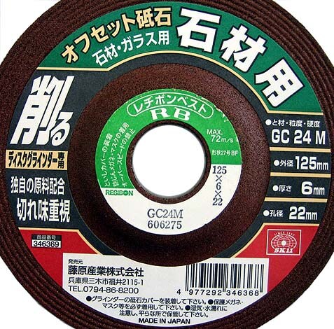| サイズ(外径*厚さ*孔径):125*6*22mm 砥材・粒度・硬度:GC24M 最高使用周速度:72m/s ディスクグラインダー専用 |