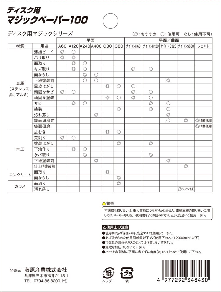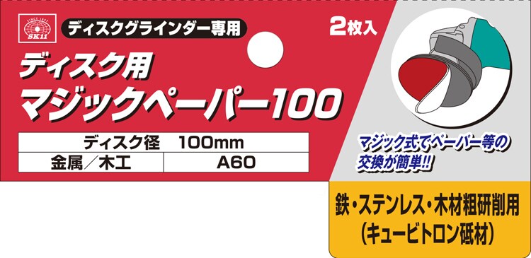 SK11 ディスク用マジックペーパー 100 A60 鉄・ステンレス・木材粗研削用 348430 (2枚入)