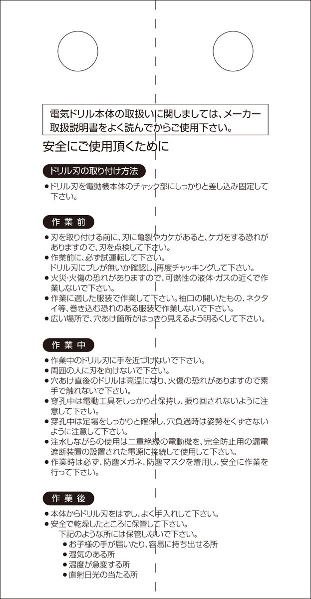 ・大理石への穴あけの場合は回転モードで穴あけしてください(材料の割れや欠けが生じる場合があります)。