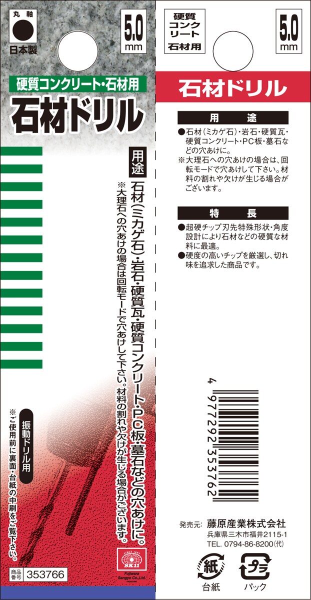 SK11 硬質コンクリート・石材用 石材ドリル 5.0mm 353766 (1本)