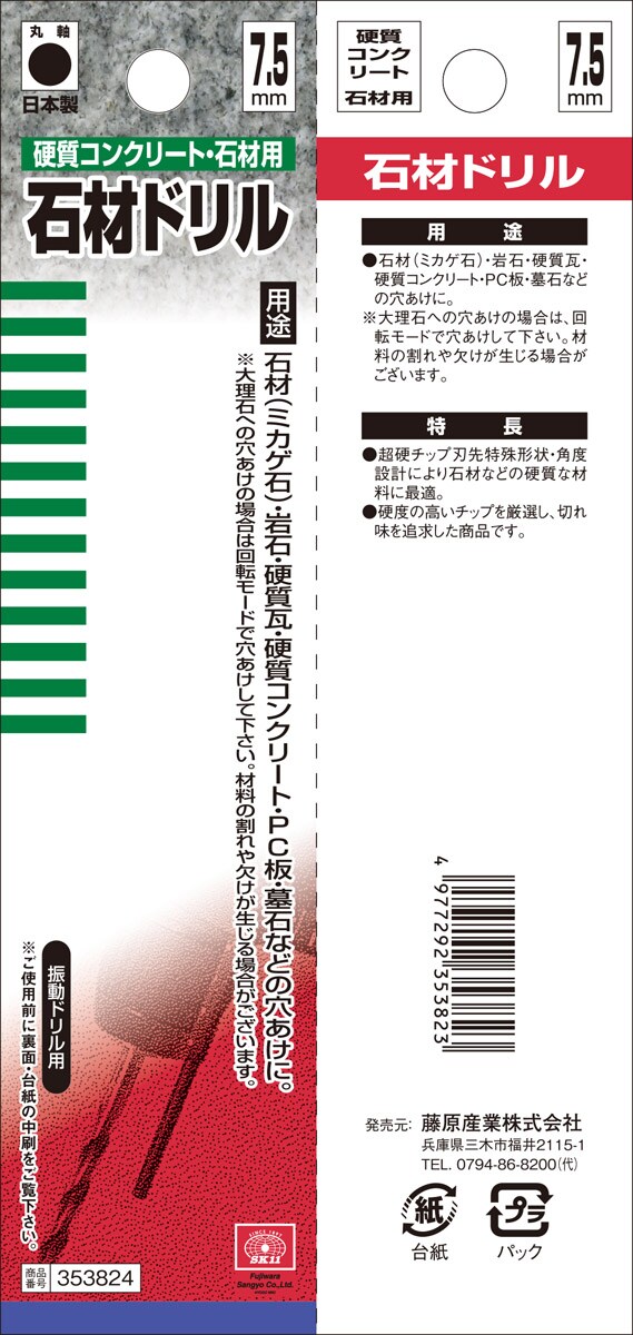 SK11 硬質コンクリート・石材用 石材ドリル 7.5mm 353824 (1本)
