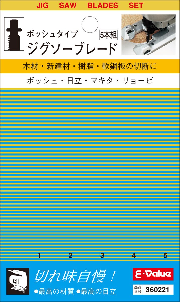 E-Value ボッシュタイプ ジグソーブレードセット (5本組)