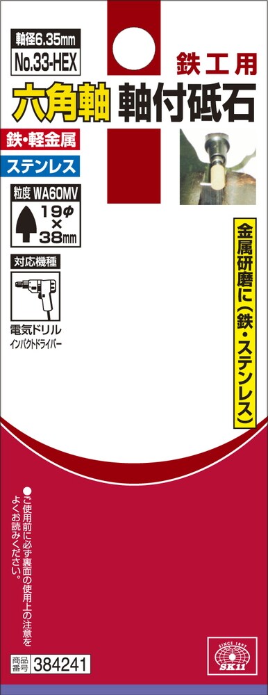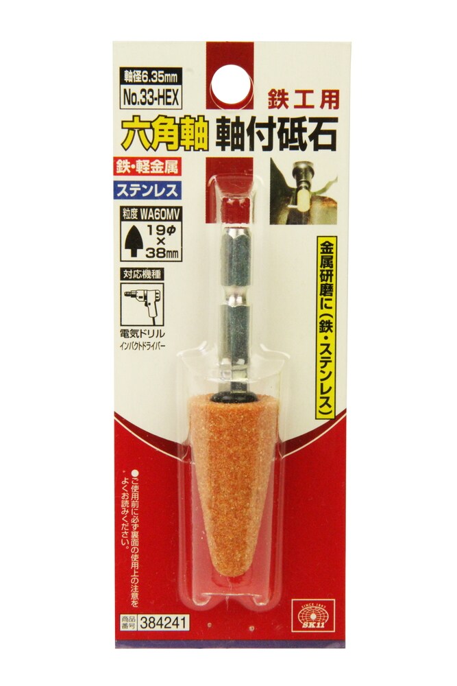SK11 六角軸 軸付砥石 鉄工用 No.33-HEX 384241 (1本)