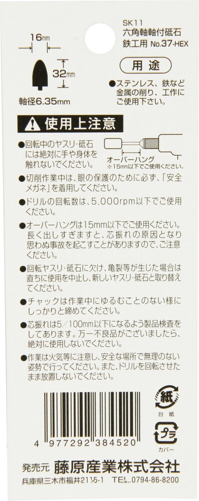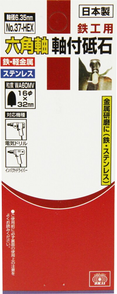 SK11 六角軸 軸付砥石 鉄工用 No.37-HEX (1本)