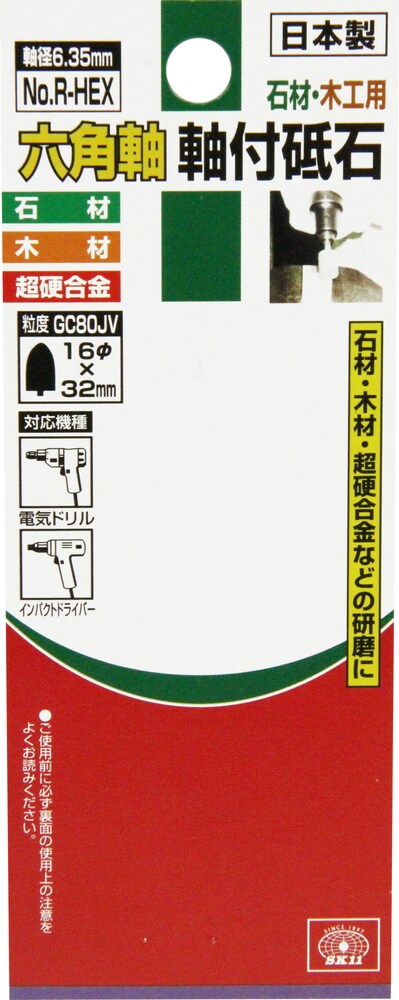 SK11 六角軸 軸付砥石 石材・木工用 No.R-HEX (1本)
