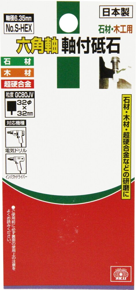 SK11 六角軸軸付砥石 石材・木工用 No..S-HEX (1本)