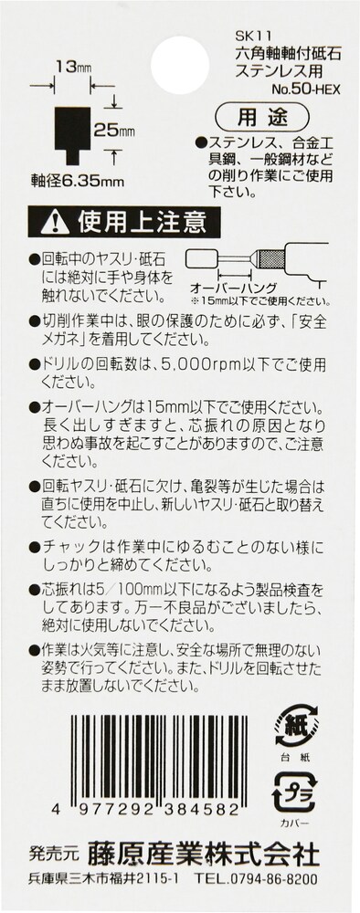 【SK11 六角軸軸付砥石 ステンレス用 No..50-HEXの商品詳細】