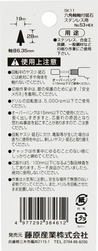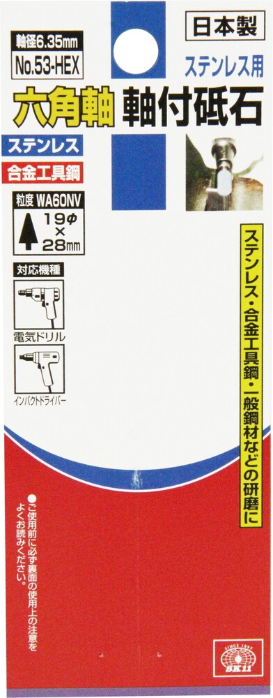 SK11 六角軸軸付砥石 ステンレス用 No..53-HEX (1本)