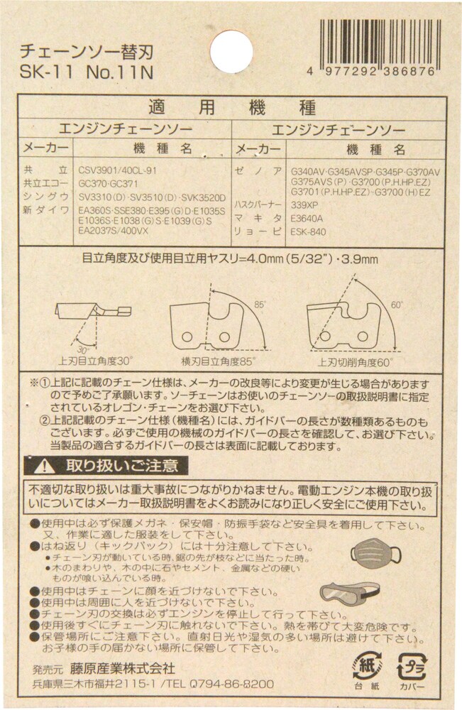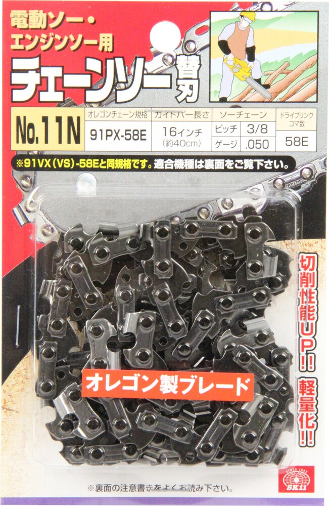 SK11 電動ソー・エンジンソー用 オレゴン製ブレード チェンソー替刃 No.11N 91PX-58E (1本)