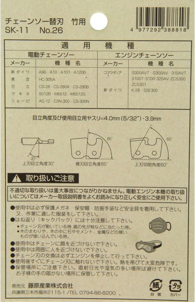 SK11 電動ソー・エンジンソー用 オレゴン製チェンソー替刃 No.26 91F-45E 竹用 (1本)